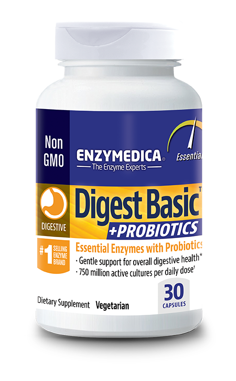 Digest Basic +Probiotics is a gentle formula that breaks down carbohydrates, fats, fiber and protein. The broad range of enzymes included in Digest Basic +Probiotics supports optimal digestion by helping the body absorb nutrients and convert food into energy.* Probiotics offer additional digestive support by boosting enzyme production and promoting regularity.* Digest Basic +Probiotics provides the convenience of high-potency digestive enzymes combined with guaranteed delivery of active probiotic cultures.