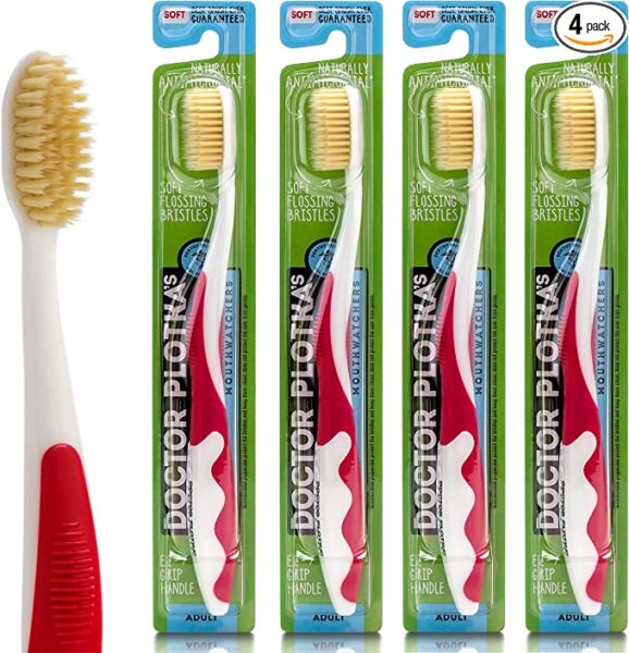 SOFT BRISTLE TOOTHBRUSH Dr Plotka’s toothbrush is quite simply the BEST.BRUSH.EVER! The extra soft, multi-layered bristles break up plaque and sweep away food and residue that other brushes miss – leaving your teeth looking bright and feeling noticeably cleaner, every time you brush. Pair with Dr Plotka’s All Natural Whitening Toothpaste for the ultimate brushing experience!