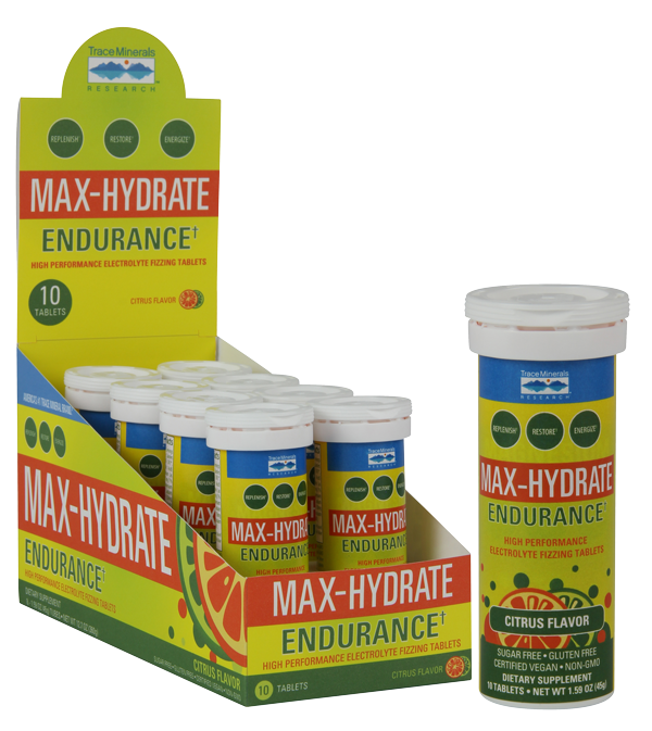 Hydration is one of our specialties at TMR. We’ve been pioneering performance hydration since 1972 and we are passionate about providing the purest, most concentrated performance electrolytes on the market. For years, athletes have looked to TMR for the highest quality electrolyte products to help them reach their peak performance. Max-Hydrate is a convenient, great-tasting fizzing tablet that when added to water, provides elite levels of electrolytes–sodium, potassium, magnesium, calcium–to help avoid muscle cramping and muscle fatigue. It’s available in three unique formulas–ENDURANCE, IMMUNITY, & ENERGY–for all of your needs.