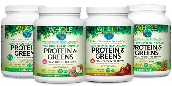 Whole Earth & Sea Fermented Organic Protein & Greens is a 100% fermented and certified organic formula providing 21 g of quality plant protein in every serving. This exceptional non-GMO, vegan-friendly green superfood formula contains fermented grasses, fruits, vegetables, and micronized medicinal mushrooms to support an active, healthy, and sustainable lifestyle.*